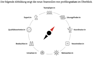 Das Modell von profilingvalues unterscheidet neun zentrale Teamrollen, die sich gegenseitig ergänzen: